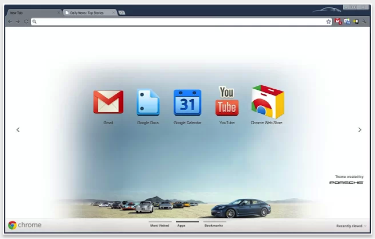 Slinky Brushed — одна из элегантных тем Google Chrome, дизайн которой чистый и простой. Тема подчеркивает гладкость полированного металла, успокаивающего глаза. В основном эта тема специально разработана, в основном ориентирована на контент веб-сайта. Таким образом, вы можете легко увидеть вкладку, закладки и панель поиска, которые улучшают ваш просмотр.