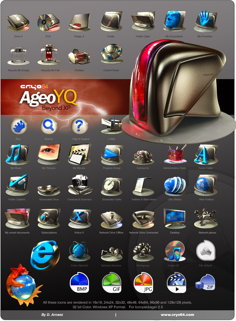 Включает 180 системных значков, а также 46 значков приложений, значков типов файлов и 28 дополнительных значков устройств и тему курсора.