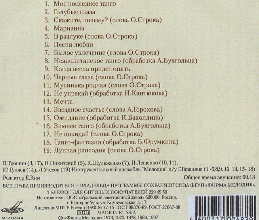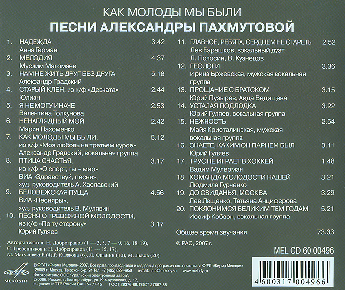 - Авторы: Вадим Байков (музыка и слова)