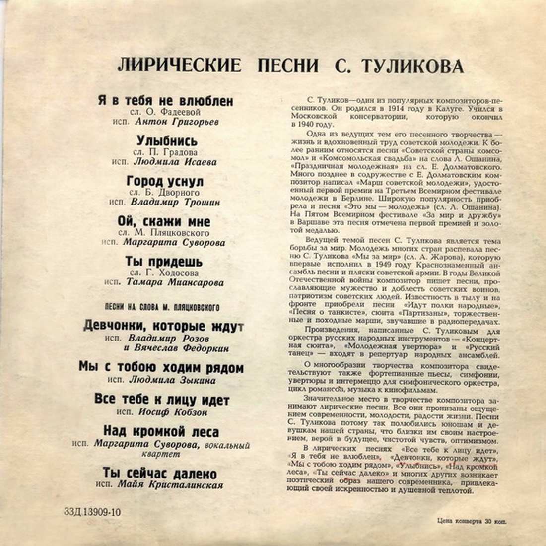 - Авторы: Серафим Туликов (музыка), Михаил Пляцковский (слова)