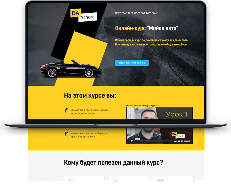Вы получаете функциональный лендинг пейдж с продающей маркетинговой структурой, но с упрощенным дизайном.