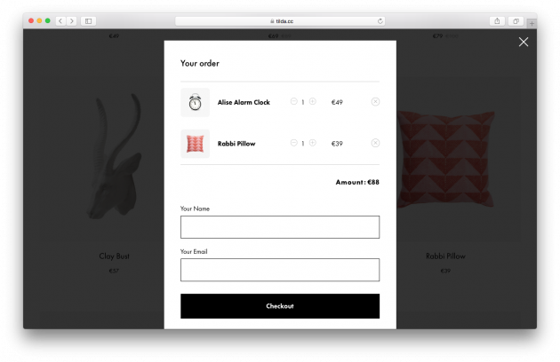 Шаг 2: Перейдите на сайт tilda.cc и поместите товары, которые хотите купить, в корзину. Закончив покупки, нажмите «Оформить заказ» или «Просмотреть корзину», чтобы перейти на страницу оформления заказа Tilda.
