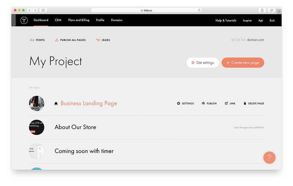 Tilda Publishing (Тильда Паблишинг) — суперсовременный генератор сайтов и собственных индивидуальных интернет-страниц для предпринимателей, бизнесменов, фрилансеров и людей творческих профессий.