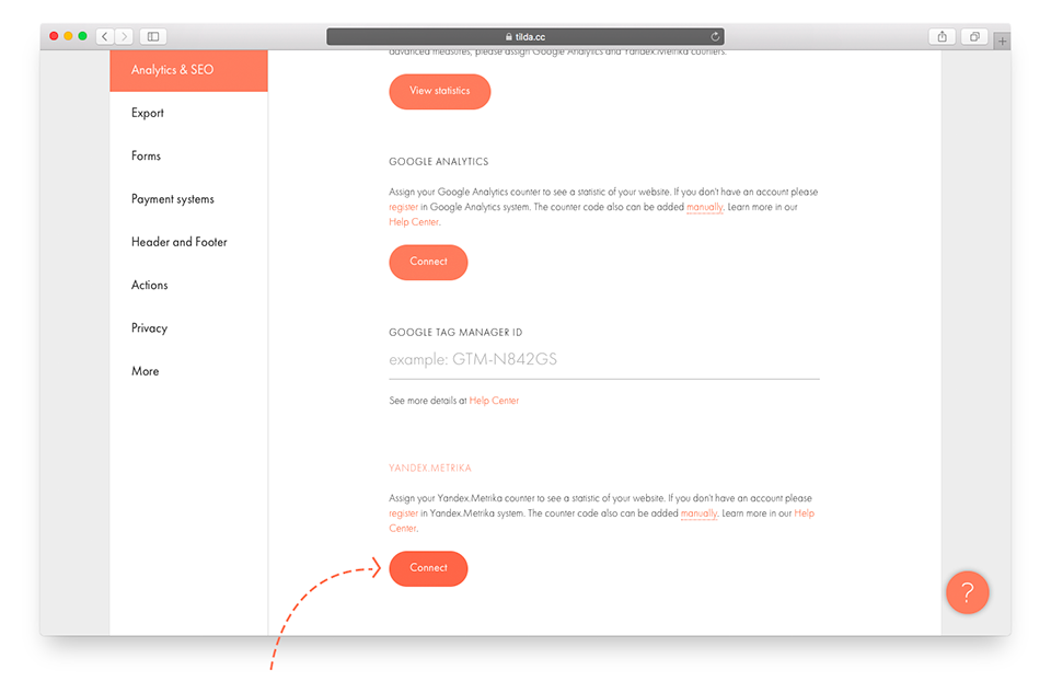 Для этого нужно зайти в Настройки сайта → SEO и выбрать Яндекс Вебмастер или Google Search Console.