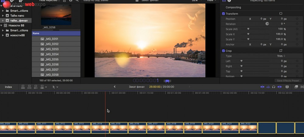 Для того чтобы получить time lapse захода\восхода солнца, снимать надо несколько часов со строго определенными интервалами между кадрами. Обязательным условием качественной съемки является применение современной фототехники, купить которую не каждый может себе позволить. Удобнее и выгоднее таймлапс заказатьнашей компании.