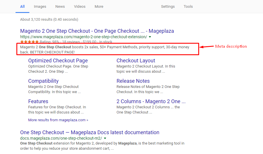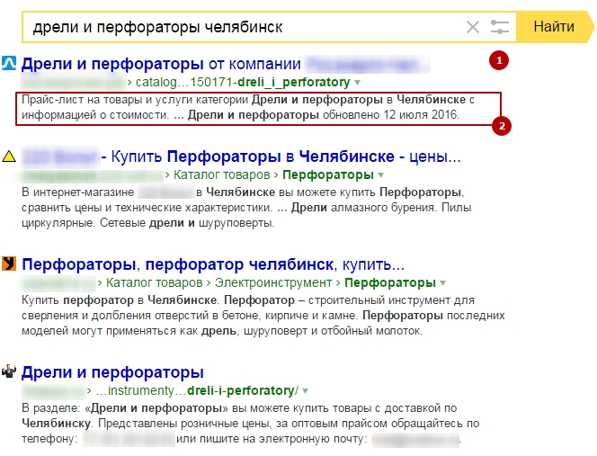 Внимание! Содержимое этого тега может отображаться под ссылкой на сайт в поисковой выдаче (текст сниппета). Это более актуально для поисковой системы Google, однако Яндекс также может выводить description в своей выдаче.