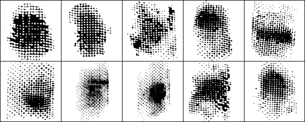 точек Лихтенштейна напоминают точки Бена Дэя с небольшим отличием. Точки Бена Дэя были крошечными и располагались на квадратной сетке, в то время как точки Лихтенштейна располагались на смещенной диагональной сетке и больше.