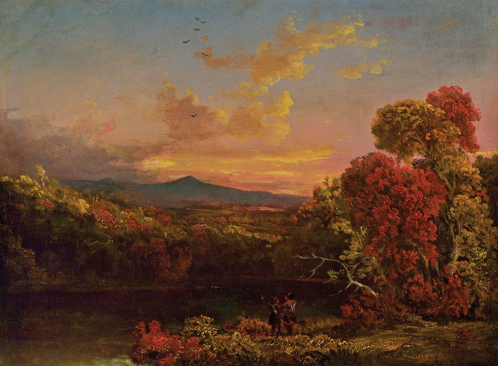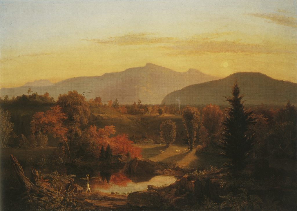 Долгое время считавшаяся прибыльной, но непритязательной темой для серьезных художников (поскольку она заключалась в простом копировании увиденного), в середине 19 века пейзажная живопись привлекла к себе новое внимание. Подобно художникам-романтикам в Великобритании и Германии, художники Школы реки Гудзон восприняли пейзаж как значимый предмет, именно тогда, когда индустриализация начала менять местность и перекраивать связь человека с окружающей средой. Американцы защищали эти силы модернизации и оплакивали утраченное во имя «прогресса».