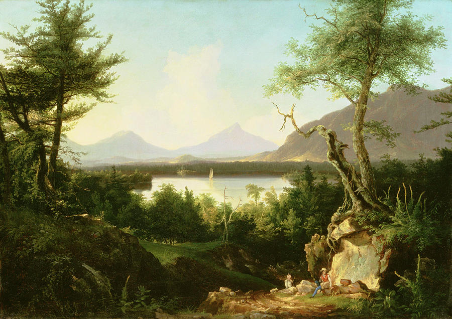 Томас Коул — Озеро с мертвыми деревьями (Кэтскилл), 1825В работах художников этой школы природа описывалась как эталон девственности и чистоты, подчёркивая тем самым божественность её происхождения.