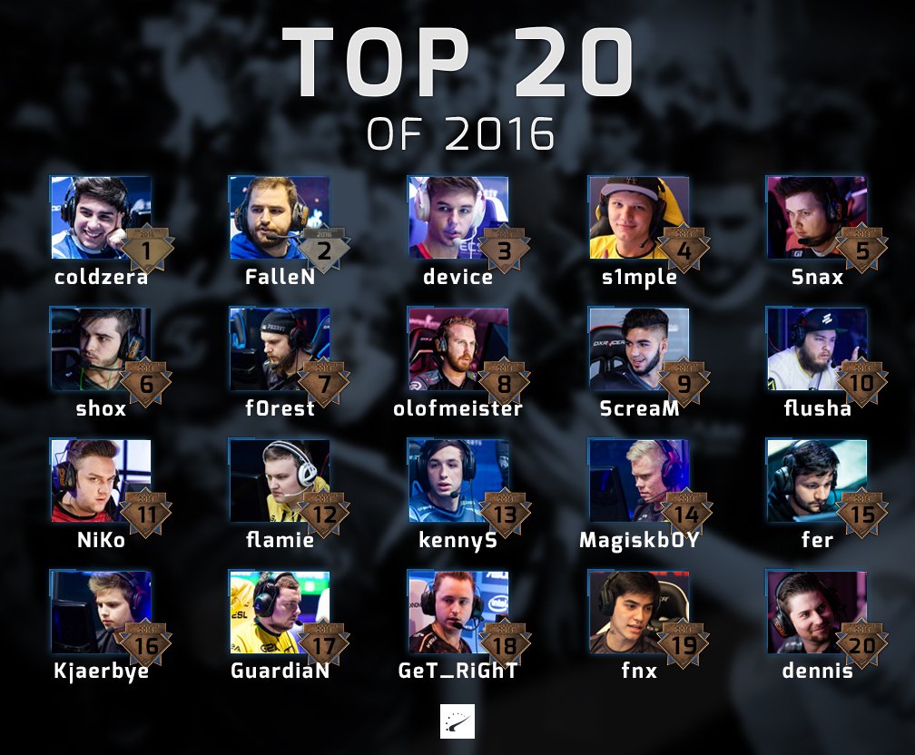 Топ-20 лучших игроков 2017 года в CS:GO по версии портала HLTV.org