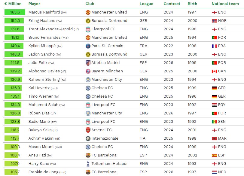 20 величайших песен Джорджа Майкла, рейтинг