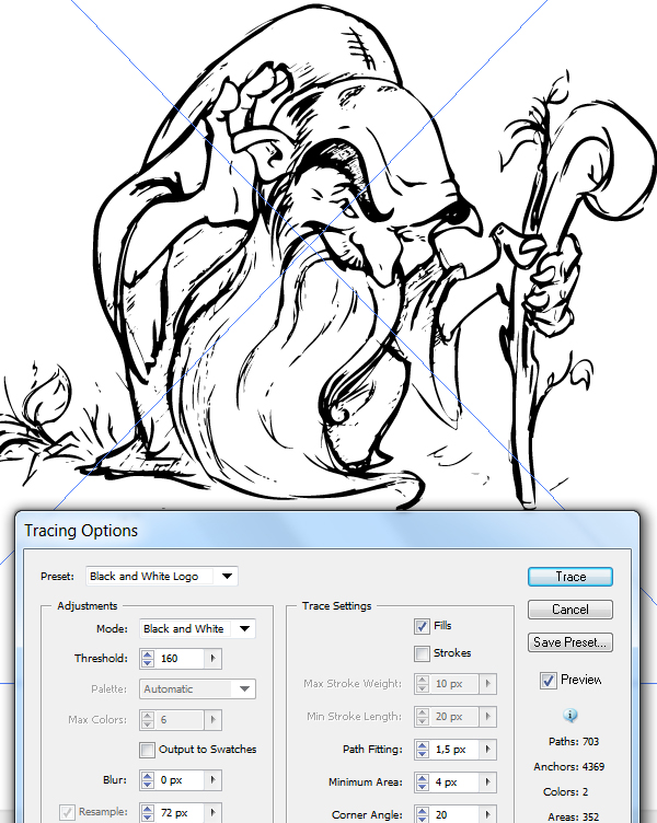 Задайте параметры трассировки для предустановки с помощью панели «Трассировка изображения».