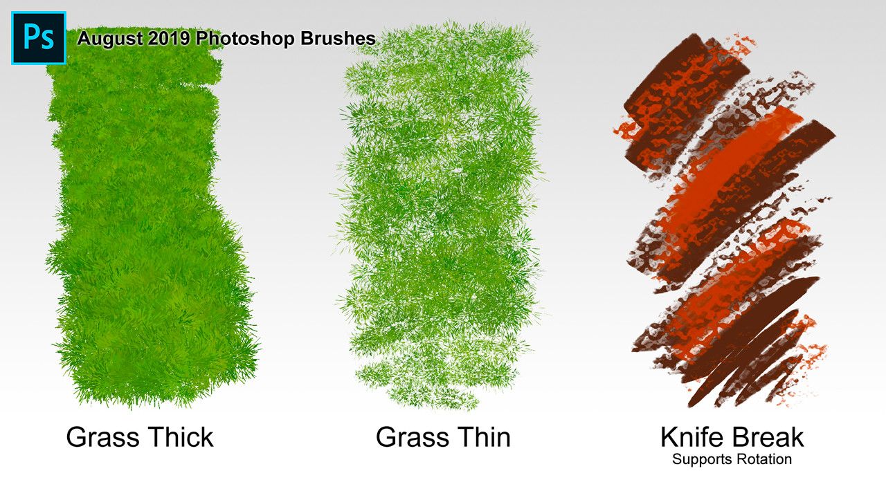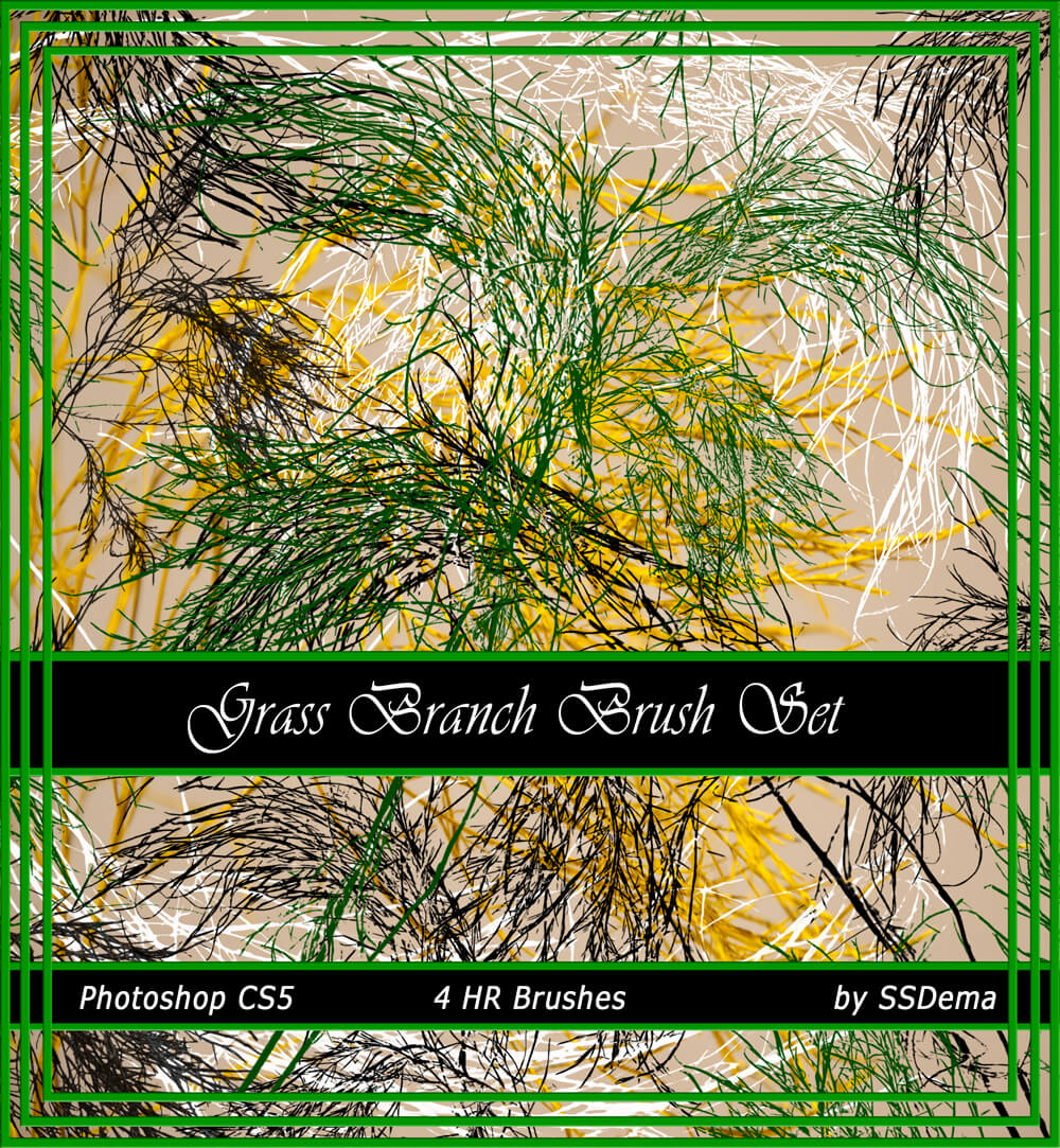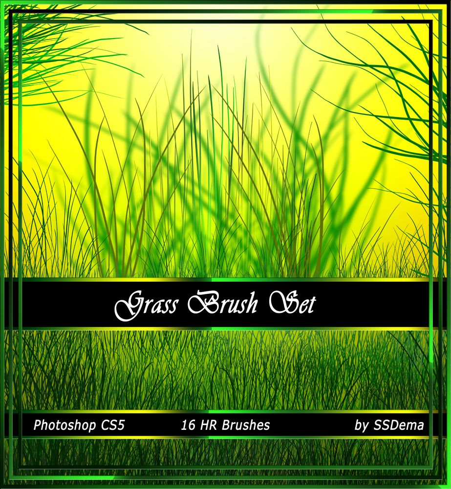 Содержит 50 различных видов травы, созданных в Photoshop CS3, но также может работать в CS, CS2, CS4. Пока что некоторые могут использовать его в Photoshop Elements и версиях Gimp.