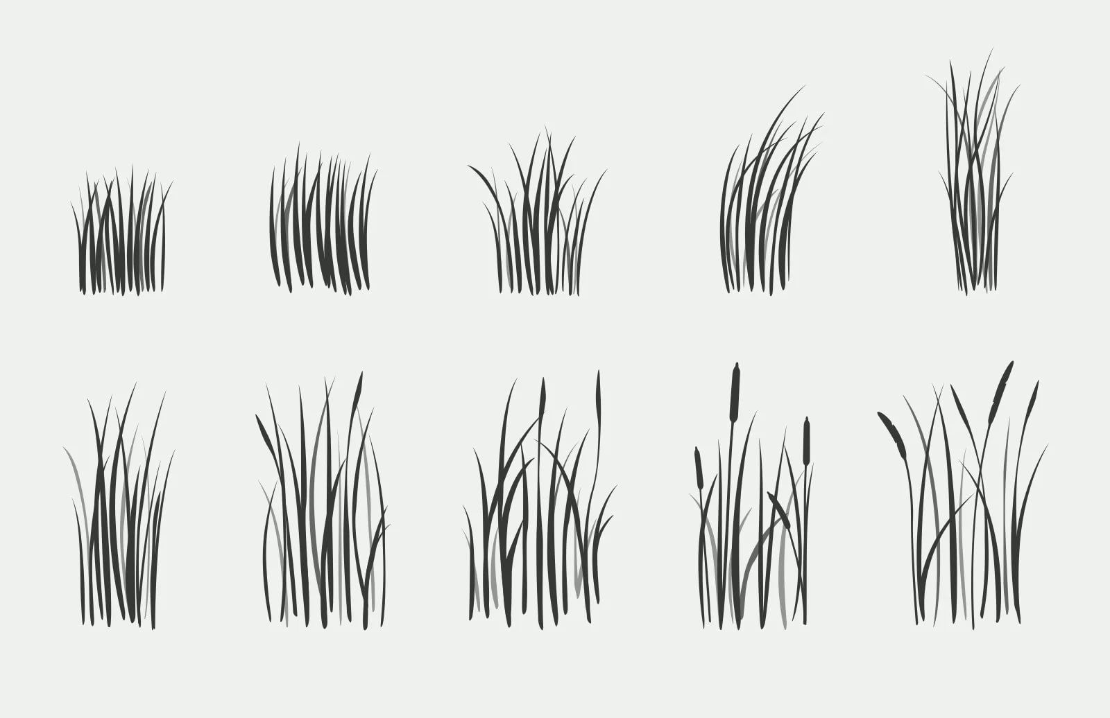 Еще один набор из 5 видов трав, которые вы можете использовать в качестве фона для своих рисунков.
