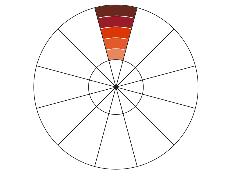Всего на внешнем круге находятся 12 цветов: 3 первичных, 3 вторичных и 6 третичных. Этот круг берут за основу дизайнеры и художники в своей работе.