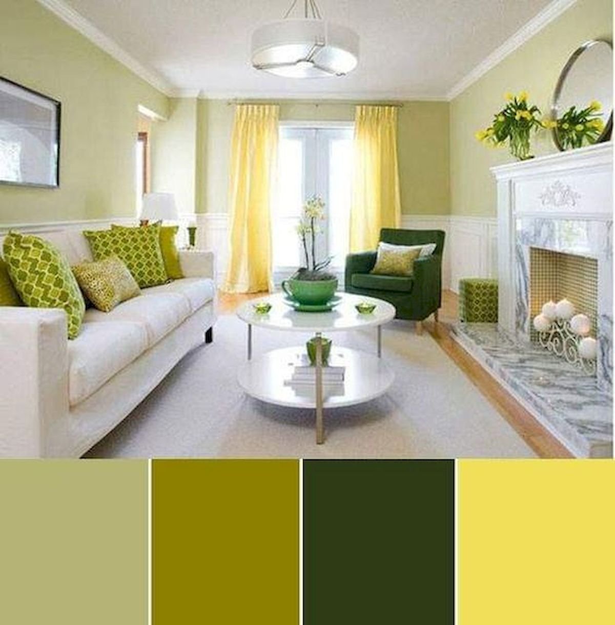 В просторных гостиных вы можете дать полную волю фантазии, а в маленьких лучше использовать светлые оттенки зеленого в комбинации с белым – это визуально увеличит комнату, сделает ее более объемной, светлой и воздушной.