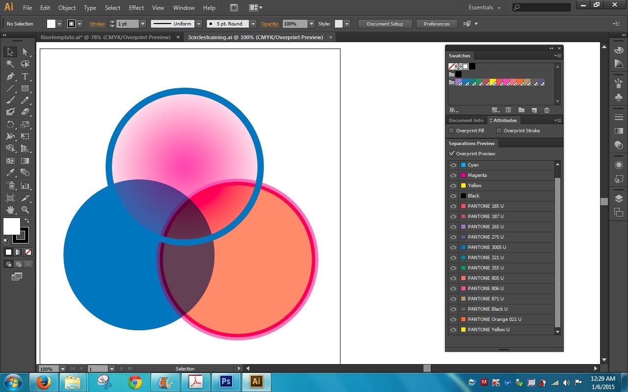 Примечание:Панель предварительного просмотра разделения в Illustrator немного отличается от панели предварительного просмотра разделения в InDesign и Acrobat, например, панель предварительного просмотра в Illustrator предназначена только для режима документа CMYK.