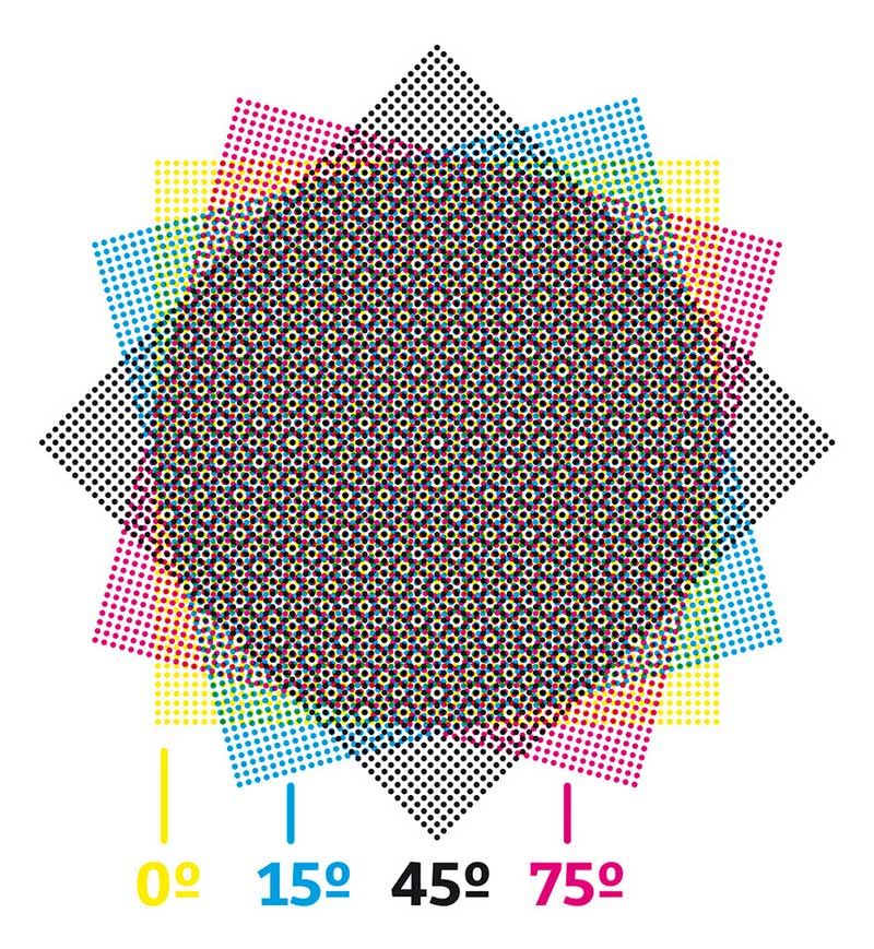 Совет : Если ваше искусство содержит более одного плашечного цвета, особенно взаимодействие между двумя или более плашечных цветов, назначьте разные углы экрана для каждого плашечного цвета цвет.