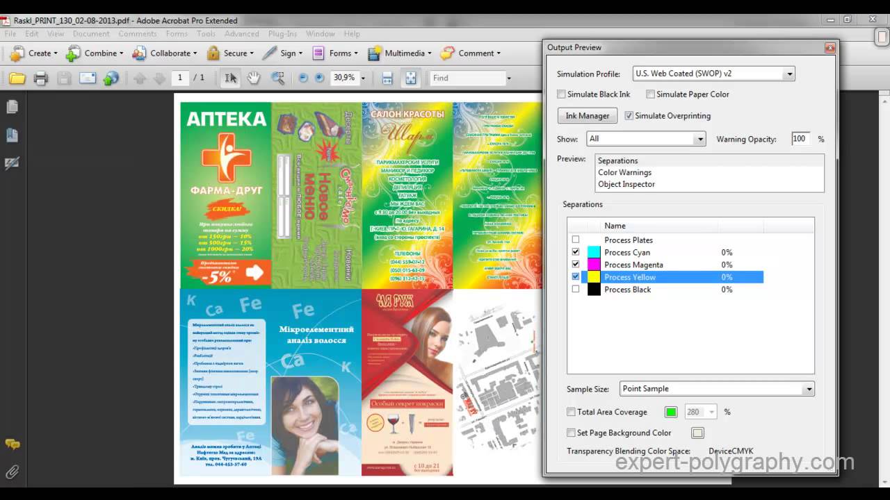Вы можете предварительно просмотреть цветоделение и наложение с помощью панели «Предварительный просмотр цветоделения».