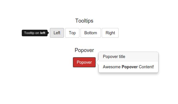 Наведите указатель мыши на кнопки ниже, чтобы увидеть четыре направления всплывающих подсказок: сверху, справа, снизу и слева. Направления отражаются при использовании Bootstrap в RTL.