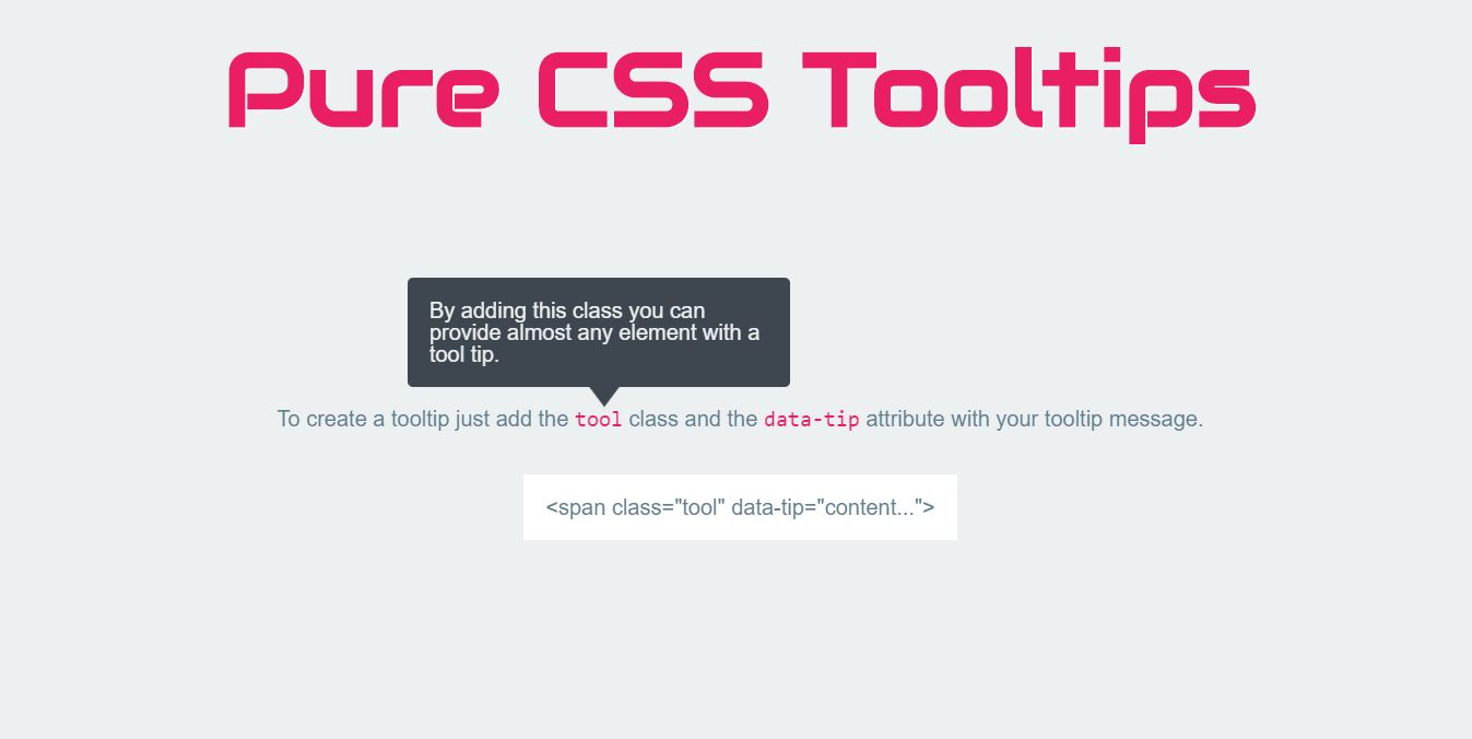 Необходимая разметка для всплывающей подсказки — это только атрибут данных и заголовок HTML-элемента, для которого вы хотите иметь всплывающую подсказку. Генерируемая разметка всплывающей подсказки довольно проста, хотя для нее требуется позиция (по умолчанию установлено значение 9).0008 сверху плагином).