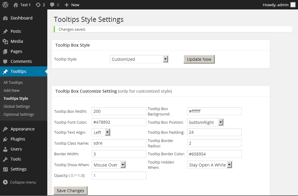 всплывающая подсказка.обновление()