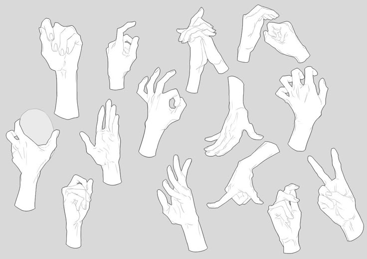 Пока ваши персонажи двигаются, говорят и жестикулируют, вам нужно будет рисовать руки под разными углами, создавая разные формы. Взгляните на иллюстрацию ниже.