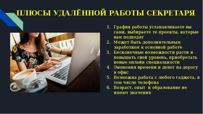 - Возможность работать в собственном ритме. Сотрудник не поддается жесткому контролю со стороны начальства. Главное — вовремя выполнять поставленные задачи. Уделять время работе можно с раннего утра или после обеда.