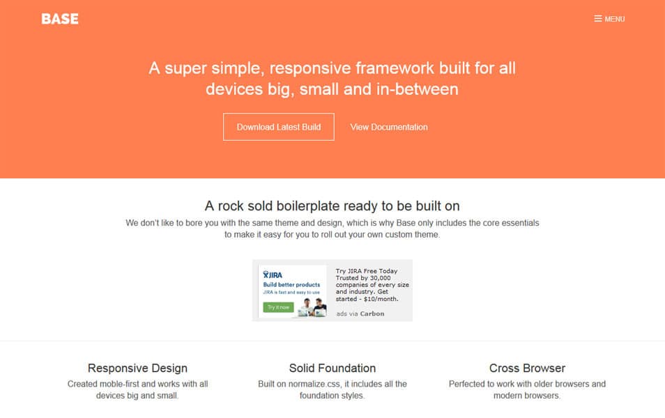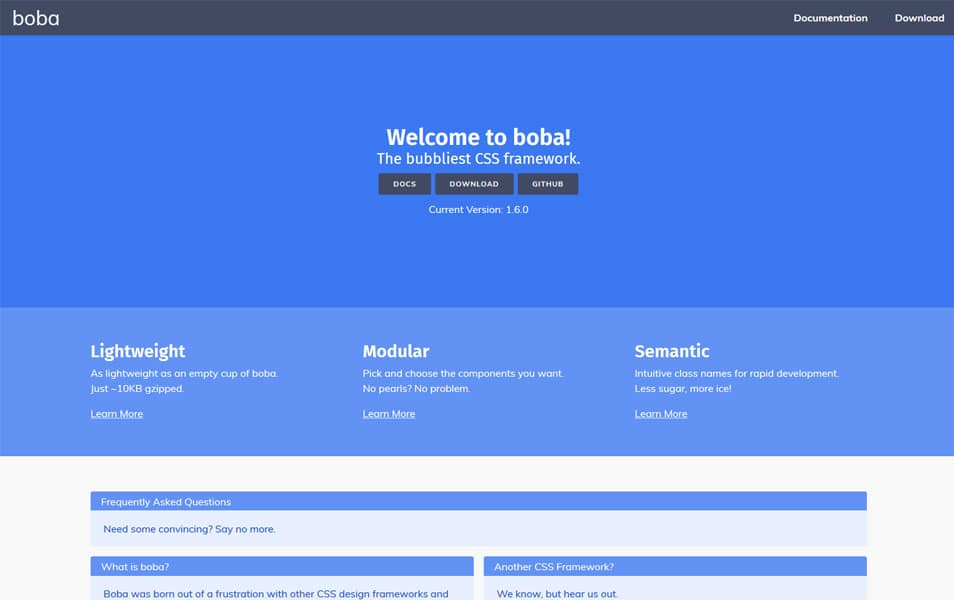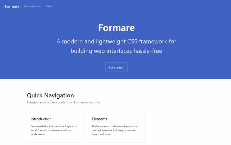 Каркас представляет собой легкий каркас, как видно из его названия. Он предлагает необходимый набор компонентов CSS для ускорения разработки, если ваш веб-сайт скромный и важный. Среди прочего, он имеет минимально стилизованные формы, вкладки и кнопки.