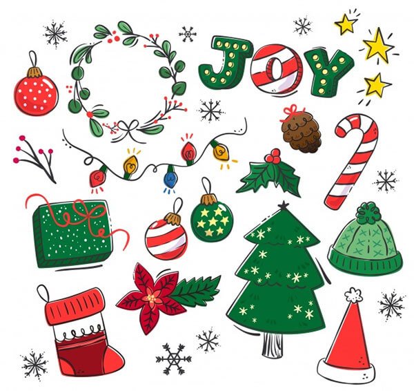 Рождественский элемент дизайна в стиле каракули. рисованной.ПРЕМИУМ