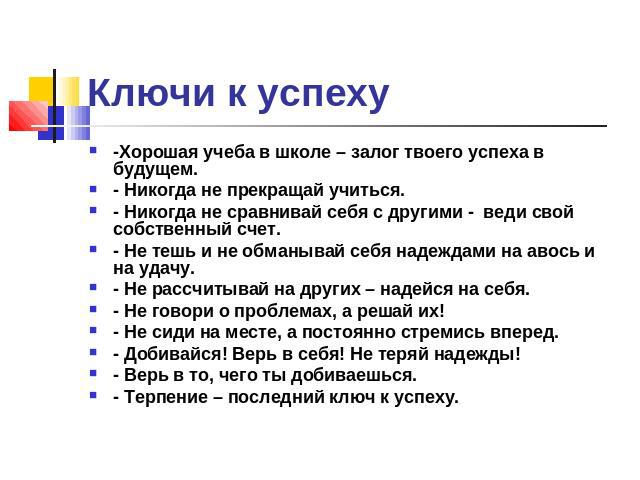 10 ключей к успеху