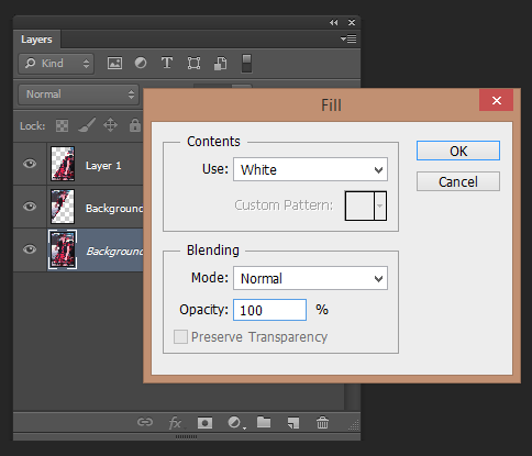 Если слой является копией фонового слоя, будут работать только определенные режимы наложения: затемнение, умножение, затемнение цветом, линейное затемнение, осветление, экран, осветление цветом, линейное осветление, наложение, мягкий свет, жесткий свет, яркий свет и Линейный свет.