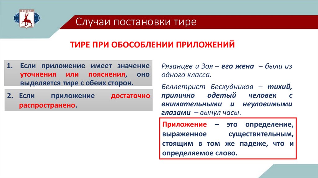 1. Если перед приложением можно без изменения смысла его вставить а именно, например: