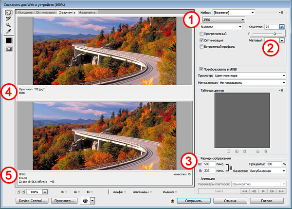 PSD работает только с приложениями Adobe, но может быть легко преобразован в JPG.После выбора формата изображения настройте качество в соответствии с вашими требованиями. Красочные изображения хорошо смотрятся в формате JPG; изображения с меньшим количеством цветов хорошо работают с форматами файлов PNG-8 или PNG-24. Вы просматриваете сжатое изображение в левом нижнем углу окна предварительного просмотра.