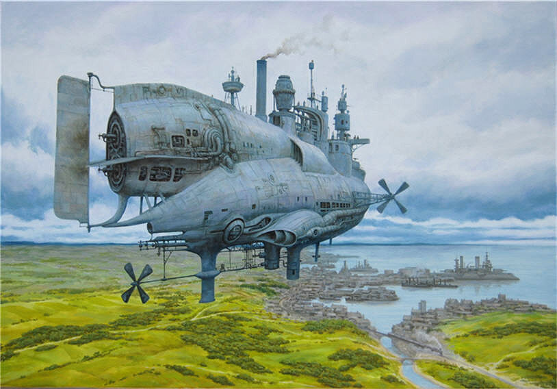 Но его излюбленное время — это XVIII-XIX век. Основных направлений в его работах два — в меньшей степени это исторические зарисовки или портреты и в большей степени это те же исторические сюжеты, но с добавлением в них неведомых механических чудо-машин: странных дирижаблей, подводных лодок, карет-паровозов, шагоходов и прочее (что собстченно и называется: стимпанк).