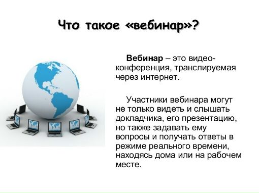 К счастью, в наши дни это не требуется. Люди могут получить новые знания, поучаствовать в конференции или семинаре не выходя из дома. Интернет, плюс гаджет, подключенный к Сети, позволяют слушать докладчика и участвовать в обсуждении сидя в любимом кресле, благодаря появлению вебинаров.