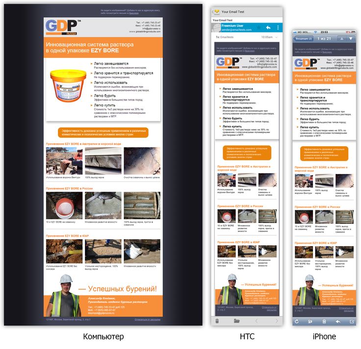 Поэтому самый верный способ протестировать макет письма — сделать рассылку на свои почтовые ящики. Именно этот прием используют опытные верстальщики.