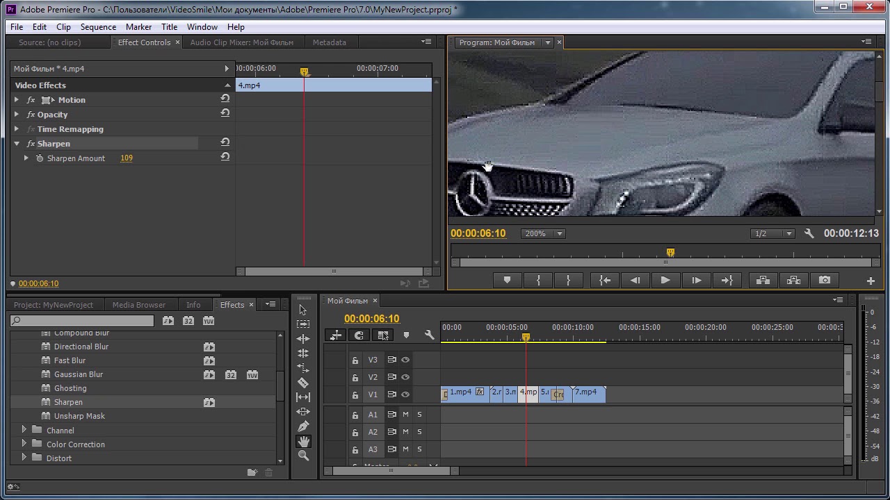 Стандартные эффекты в Premiere