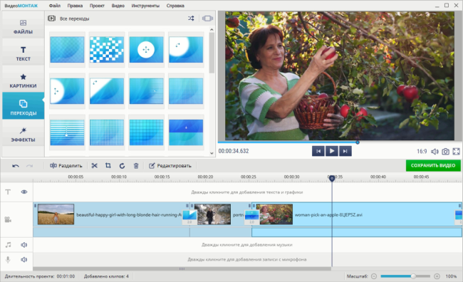 Большинство возможностей для видео монтажа доступны в бесплатной версии.