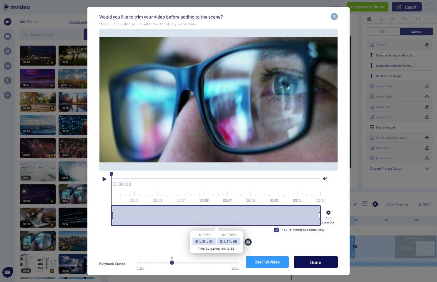 4) Выбери длительность и скорость слайд-шоу, а также при надобности обрежьте и откорректируйте видео