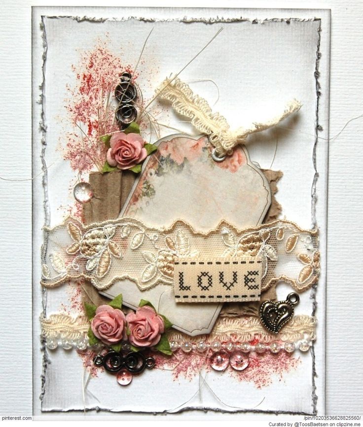 Если вы или ваши родные занимаетесь рукоделием, то у вас, скорее всего, скопилась масса красивых лоскутков и обрезков, которые можно пустить в ход при создании очень милой и простой открытки в винтажном стиле.