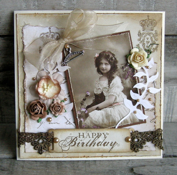 Если вы готовите открытку для человека, которого знаете очень давно, используйте для декорирования старые совместные фото. Во-первых, такие композиции выглядят очень стильно, так как любые изделия ретро уже много лет остаются в тренде. Во-вторых, фото, в особенности если речь идет о черно-белых изображениях, придадут открытке душевность. О таком подарке никогда не забудут, он непременно займет достойное место в семейной коллекции близкого человека.