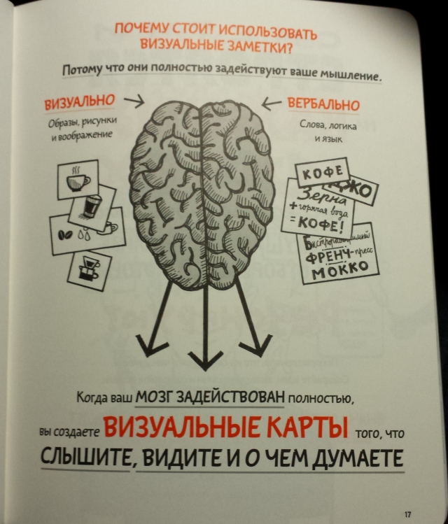 Это способ рисования для всех, кто способен черкать ручкой по бумаге. Мозг использует всего два канала для обработки информации: вербальный (идеи как слова) и визуальный (идеи как изображения). Поэтому скетчноутинг — это идеальный способ, чтобы записывать меньше, но качественнее.