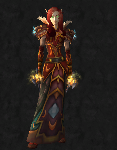 Снаряжение Exiled Dabbler напоминает Demoniac’s Threads, старый набор ZG Warlock.Эти модели были повторно использованы для нескольких популярных ванильных предметов Royal Ascension Regalia.