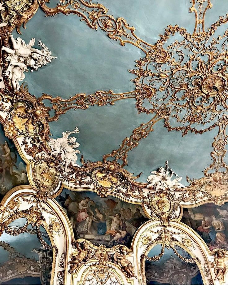 Волюты, аканты, маскароны, пальметты, картуши, раковины, трельяж в декоре.