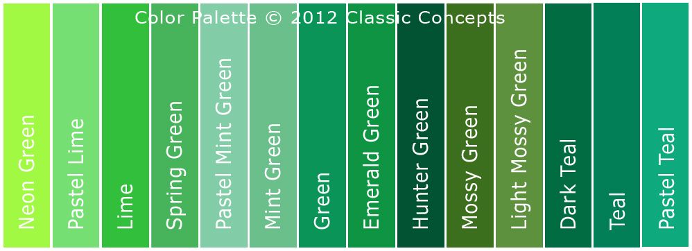 Узнайте о различных оттенках зеленого цвета