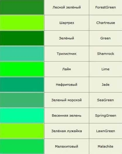 Оттенки зеленого: названия