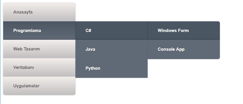 <ul> <li><a href=#>Menu 1</a> <ul> <li><a href=#>Sudmenu 1</a></li> <li><a href=#>Sudmenu 1</a></li> <li><a href=#>Sudmenu 1</a></li> </ul> </li> <li><a href=#>Menu 2</a> <ul> <li><a href=#>Sudmenu 2</a></li> <li><a href=#>Sudmenu 2</a></li> <li><a href=#>Sudmenu 2</a></li> </ul> </li> <li><a href=#>Menu 3</a> <ul> <li><a href=#>Sudmenu 3</a></li> <li><a href=#>Sudmenu 3</a></li> <li><a href=#>Sudmenu 3</a></li> </ul> </li> <li><a href=#>Menu 4</a> <ul> <li><a href=#>Sudmenu 4</a></li> <li><a href=#>Sudmenu 4</a></li> <li><a href=#>Sudmenu 4</a></li> </ul> </li> <li><a href=#>Menu 5</a> <ul> <li><a href=#>Sudmenu 5</a></li> <li><a href=#>Sudmenu 5</a></li> <li><a href=#>Sudmenu 5</a></li> </ul> </li> </ul>
