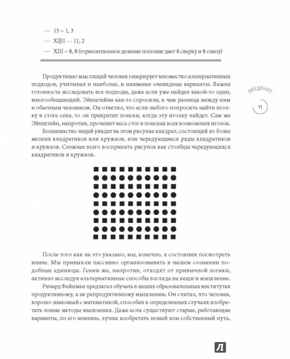 Ряды по-прежнему имеют равную длину (можете измерить), но сейчас вы видите нечто иное. Сочетание точек с прямыми линиями перенесло фокус внимания и застало врасплох шаблоны работы головного мозга, изменило восприятие рисунка и позволило видеть то, чего не удавалось замечать ранее. Точно так же методики из этой книги помогают изменить способ мышления, привлекая внимание не к тому, о чем вы думаете обычно, и предлагая иные способы истолкования того, что вы видите. Эти методики позволят увидеть нечто другое, при этом имея в распоряжении ту же информацию, что и все остальные.