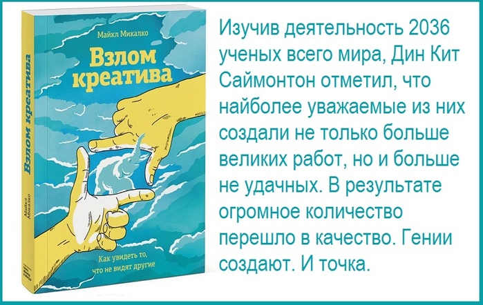 Книга «Взлом креатива». Этот материал — это субъективная попытка создателей и участников проекта «Читай Быстро» выделить главное из книги Майкла Микалко «Взлом креатива. Как увидеть то, что не видят другие». Читайте краткое содержание — принимайте решение, стоит ли читать всю книгу целиком.